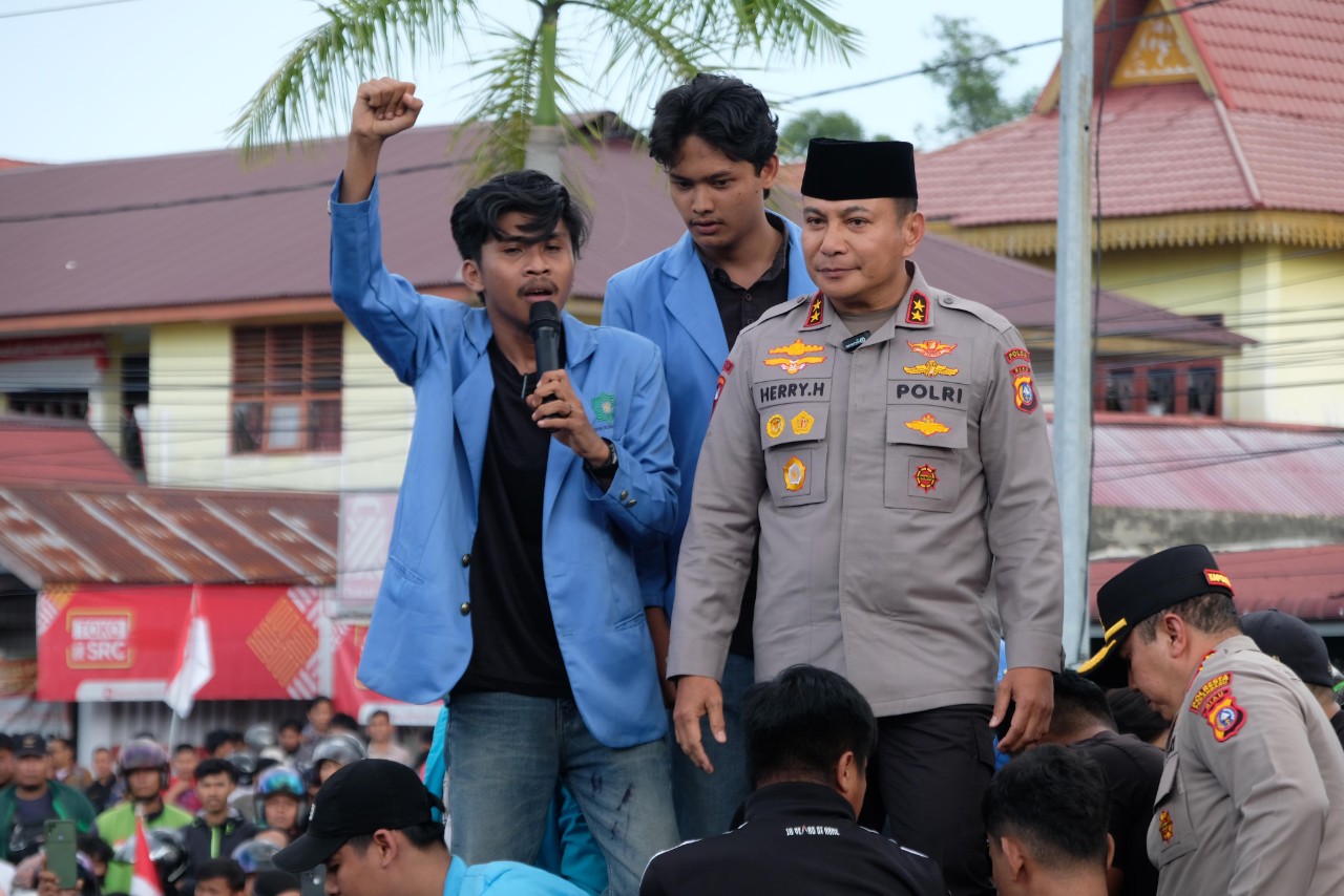 Tak lama kemudian, Kapolda Riau Irjen Pol Herry Heryawan akhirnya turun langsung menemui massa.