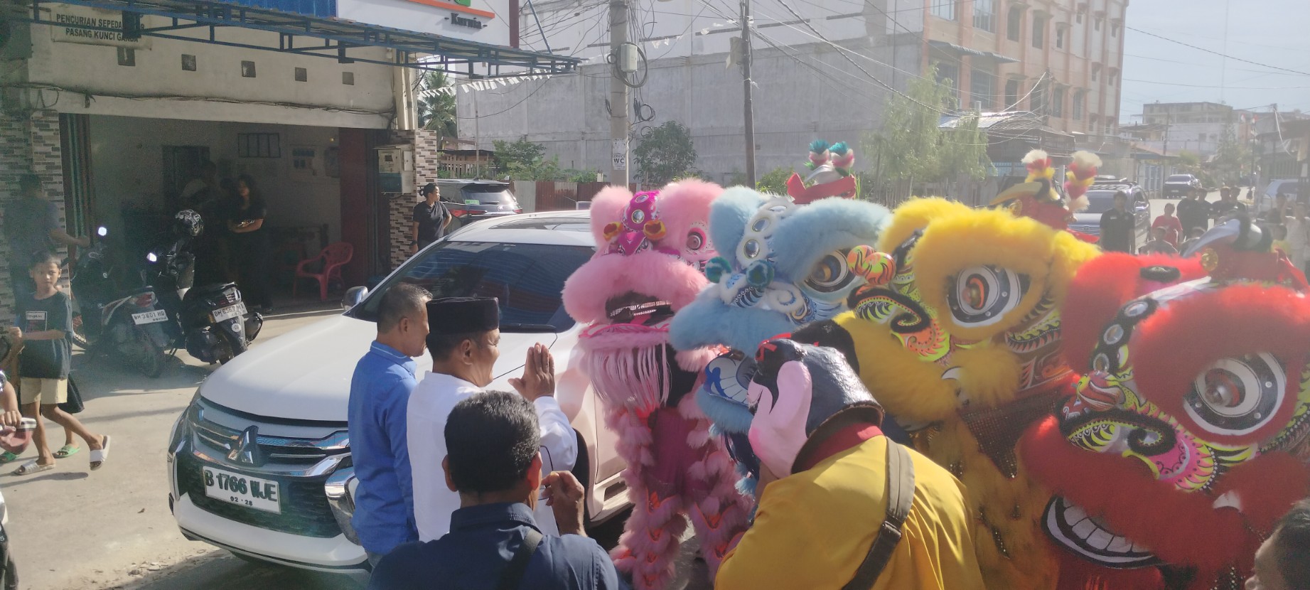 Calon wakil Walikota Dumai, Sugiyarto yang hadir dalam pertemuan kali ini disambut meriah dengan pertunjukan atraksi barongsai dari sanggar Huat chu kung twoa (HCKT) dan sorak-sorakan kemenangan dari para hadirin yang telah menunggu sebelumnya.