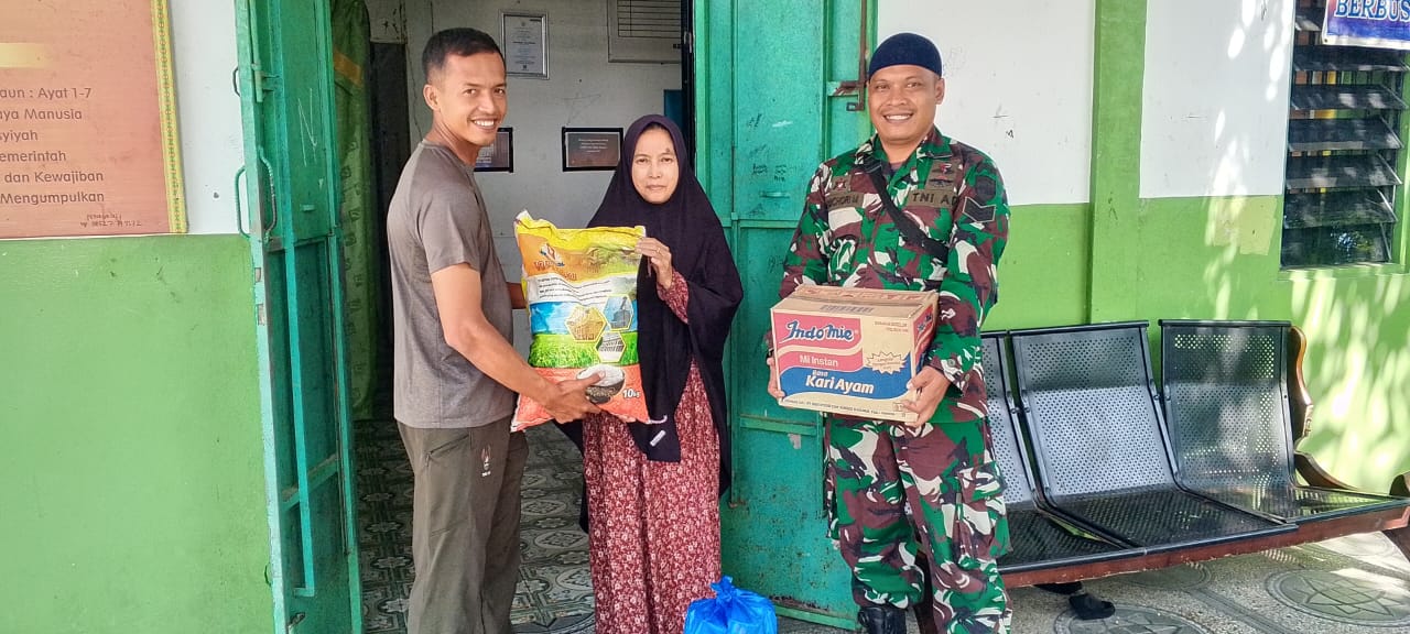 Bantuan berupa satu karung beras cap Topi Koki 10 kg, dua dus Indomie Goreng, dan lima kotak Teh Sari Wangi diserahkan langsung oleh Serka Muhammad Jalil Arbi dan Serka Andi Buchori kepada pimpinan panti, Bunda Juraidah.