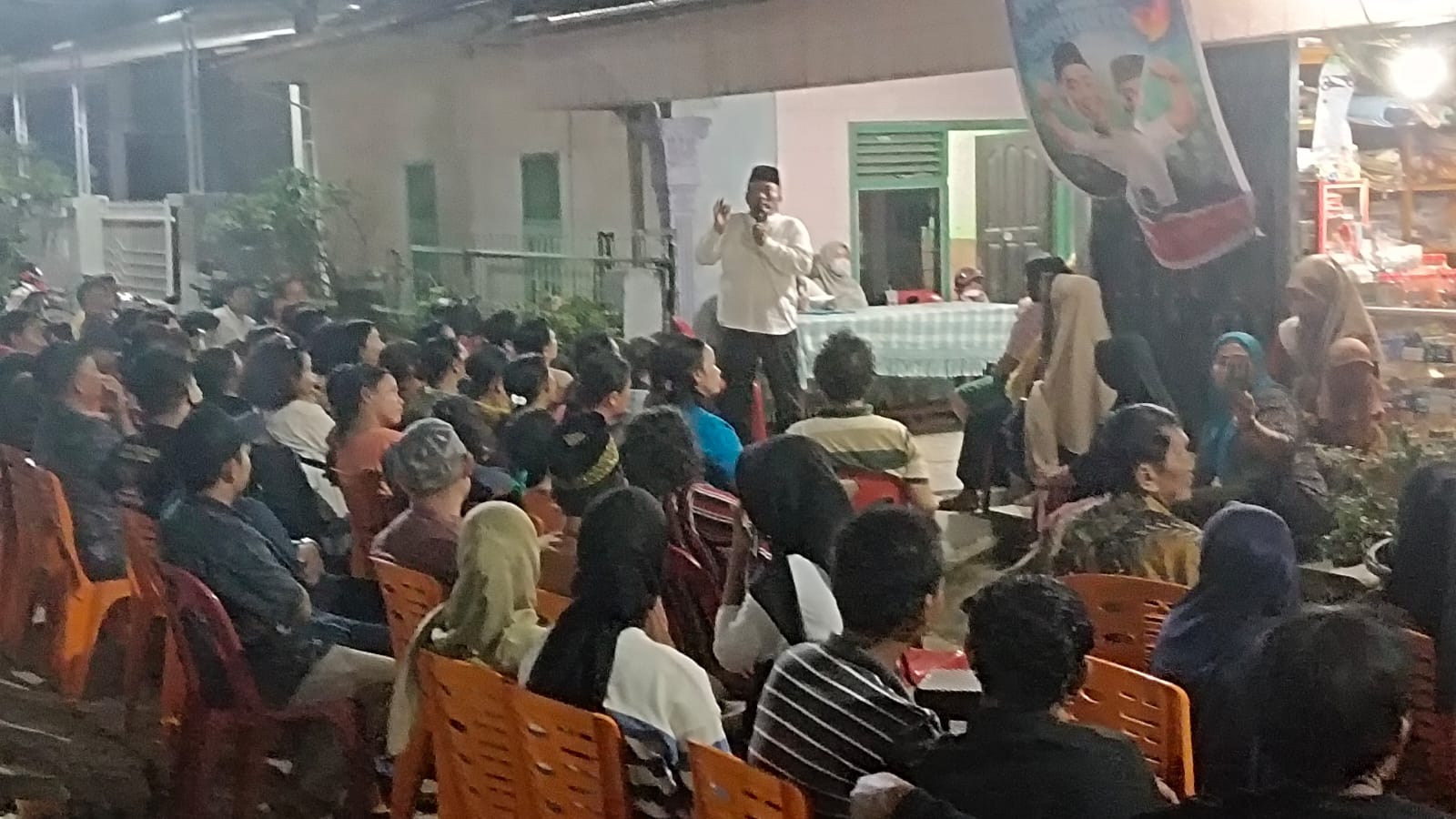 Kedatangan wakil calon petahana tersebut disambut antusias warga yang sudah menanti kedatangannya sejak habis sholat isya.